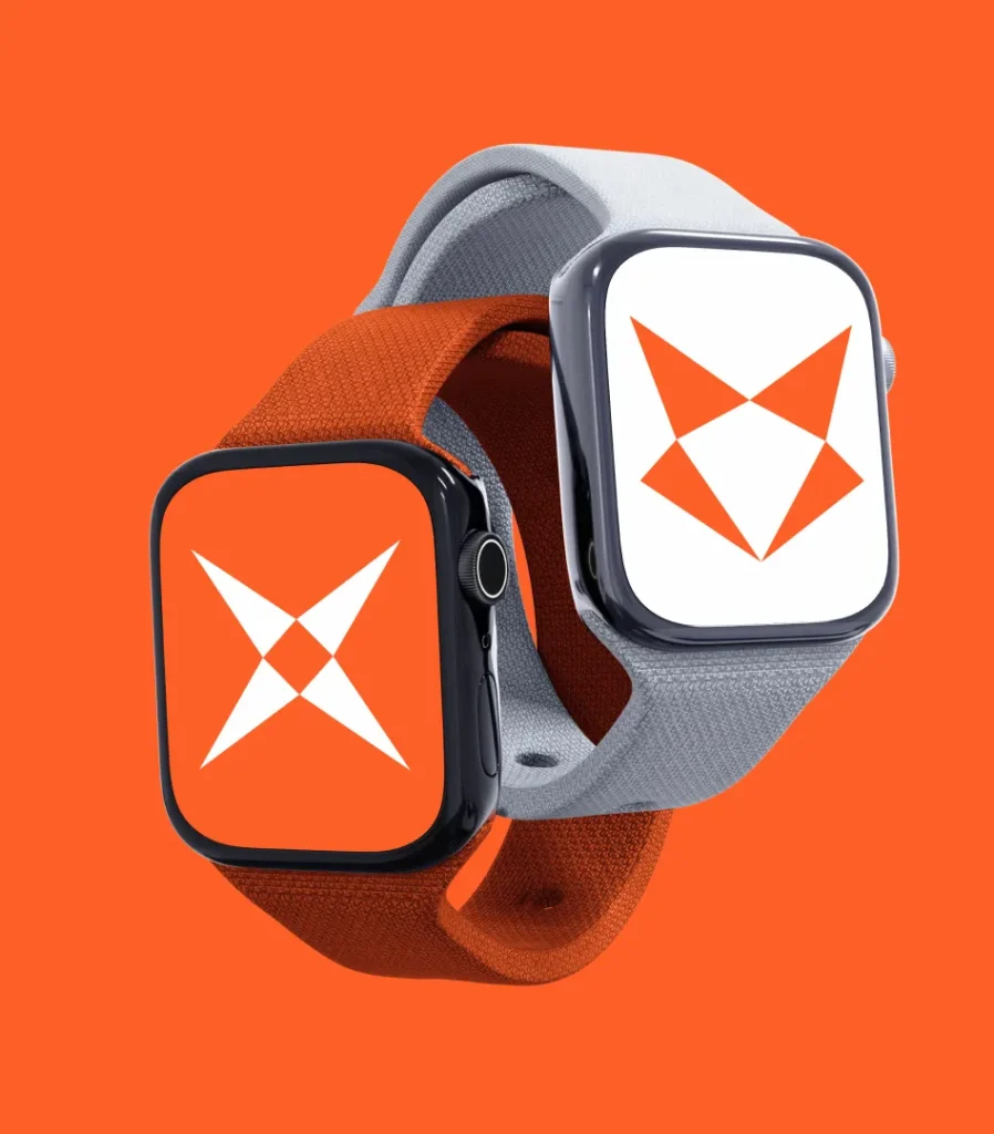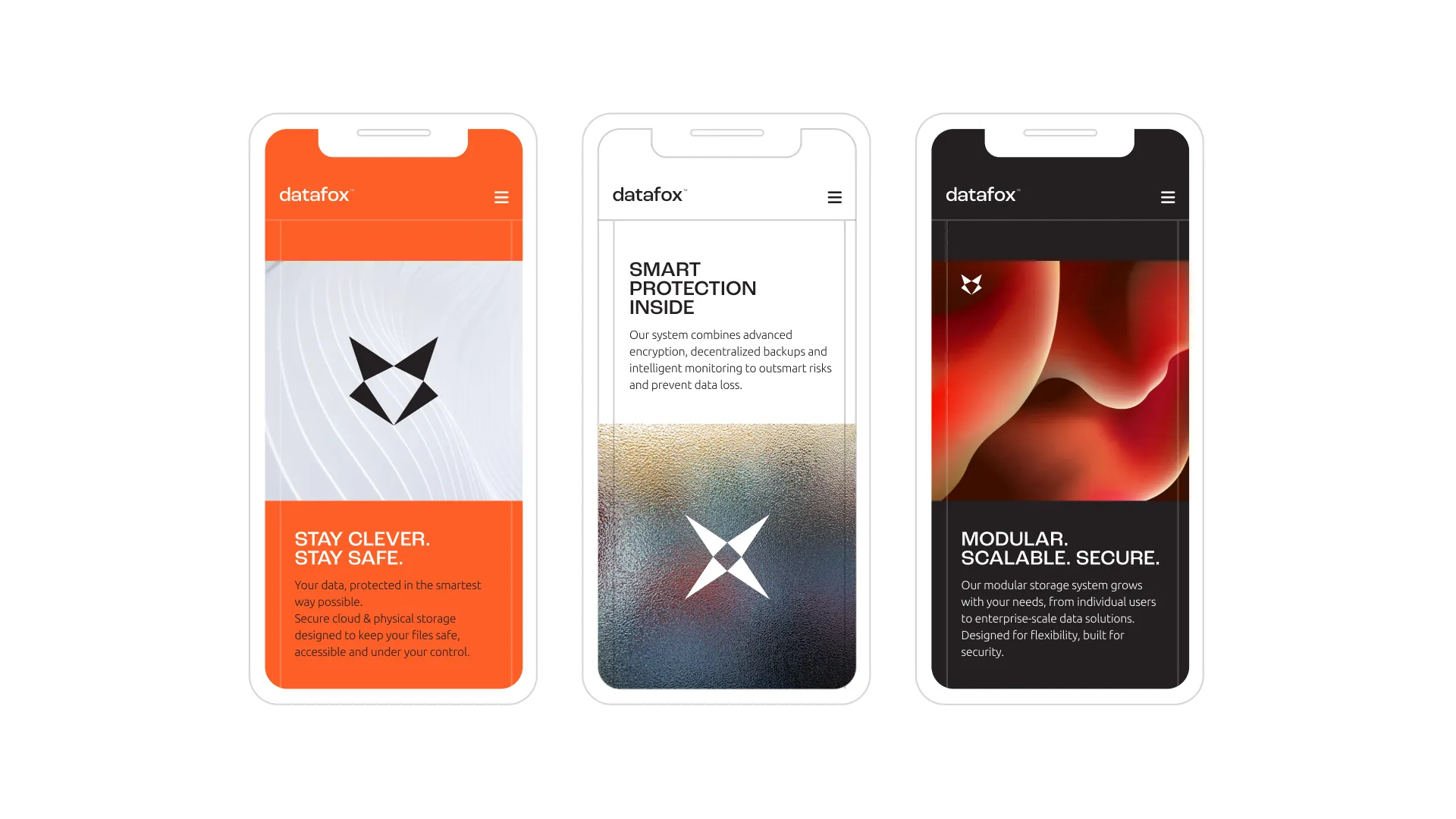 The design focuses on minimal, geometric shapes. The color palette takes inspiration from the fox, with warm oranges and deep neutrals, balancing tech reliability with a smart yet friendly feel.